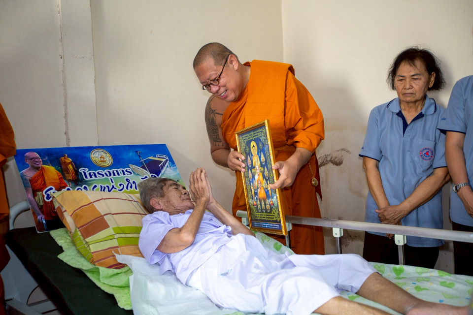 โดยเรื่องราวดังกล่าว พระครูปลัดสิทธิวัฒน์ (หลวงพี่น้ำฝน) ผู้รักษาการแทนเจ้าอาวาสวัดไผ่ล้อมพระอารามหลวง จังหวัดนครปฐม ได้นำคณะสงฆ์และเจ้าหน้าที่ประจำโครงการธนาคารแห่งกำลังใจ วัดไผ่ล้อมฯ ประสานงานกับ อสม.ตำบลพ่อพลับ เพื่อนำเตียงสำหรับผู้ป่วย ผู้ป่วย พร้อมรถวีลแชร์ ข้าวสาร น้ำดื่ม ของอุปโภค บริโภค ผ้าอ้อม เพื่อนำไปยังบ้านเลขที่ 116/5 ถ.ทหารบก 4 ต.บ่อพลับ อ.เมือง จ.นครปฐม ไปมอบให้กับ นางกุ้ยเง็ก แซ่แต้ อายุ 74 ปี ผู้ป่วยติดเตียง ที่ป่วยด้วยโรคเบาหวาน,โรคความดันโลหิตสูง,โรคกล้ามเนื้ออ่อนแรง,โรคกระดูกทับเส้น โดยมี พระดำรง ค้าทวี พระลูกชาย อายุ 45 ปี ซึ่งจำพรรษาอยู่วัดพระปฐมเจดีย์ ราชวรมหาวิหาร เป็นผู้ดูแลอยู่ไม่ห่าง
