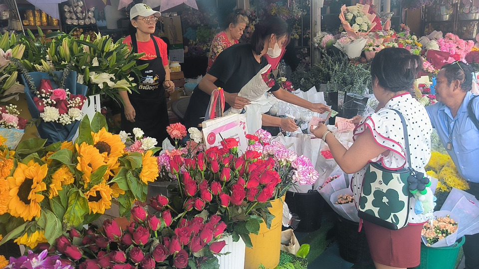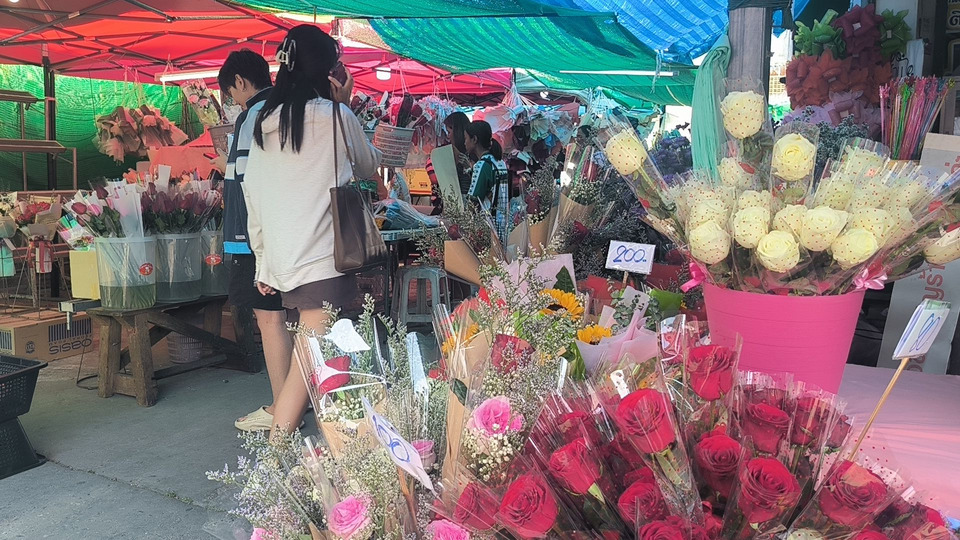 เมื่อวันที่ 14 กุมภาพันธ์ 2569 บรรยากาศการซื้อขายดอกไม้และสินค้าที่สื่อถึงวันแห่งความรัก “วาเลนไทน์เดย์” ที่ตลาดใหม่แม่กิมเฮง ถ.สุรนารี เขตเทศบาลนคร (ทน.) นครราชสีมา แหล่งจำหน่ายดอกไม้แห้ง-สด ทั้งปลีกและส่งใหญ่ที่สุดในภาคอีสาน บรรดาผู้ประกอบการนำดอกกุหลาบสีสันต่างๆออกมาวางขายและจัดตกแต่งหน้าร้านอย่างสวยงาม เพื่อดึงดูดความสนใจลูกค้า โดยมีราคาจำหน่ายดอกกุหลาบสด 1 ดอก 50 บาท แล้วแต่ขนาดและสี ส่วนดอกไม้เป็นช่อเริ่มต้น 70 -354 บาทและช่อใหญ่ 200 -1,000 บาท ตามขนาดรูปแบบและจำนวนดอกกุหลาบที่ต้องการ รวมทั้งการจัดช่อของขวัญ ของที่ระลึกที่มีช็อกโกแลตและตุ๊กตาต่างๆมาประดับแทนดอกไม้ ราคา 150 -2,000 บาท เป็นอีกหนึ่งทางเลือกสำหรับผู้ต้องการเลือกสินค้าที่มีอายุการเก็บรักษานานกว่าช่อดอกไม้ พบกลุ่มวัยรุ่นนักเรียน นักศึกษารวมทั้งวัยทำงาน ทยอยเดินทางมาเลือกซื้อดอกไม้และสินค้าเกี่ยวกับความรักกันค่อนข้างบางตา