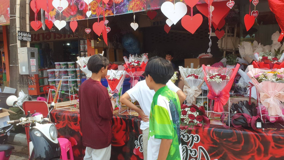 บรรยากาศวันวาเลนไทน์ในเขตเมืองระยองเป็นไปอย่างคึกคัก ประชาชนออกมาซื้อดอกกุหลาบและช่อดอกไม้จำนวนมาก เพื่อนำไปมอบแทนความรัก ส่งผลให้ร้านดอกไม้หลายแห่งมียอดขายเพิ่มขึ้นอย่างเห็นได้ชัด