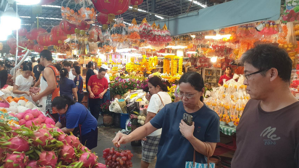 สำหรับราคาผักยังอยู่ในระดับปกติ กะหล่ำปลีและผักกาดขาว กิโลกรัมละ 30–40 บาท ขณะที่ต้นกระเทียมสำหรับทำหมี่ซัว ราคาปรับสูงขึ้นอยู่ที่กิโลกรัมละ 130 บาท ขนมเทียนราคากิโลกรัมละ 160 บาท ส่วนขนมถ้วยฟูสำหรับไหว้เจ้า มีราคาตั้งแต่ชิ้นละ 20 บาท 60 บาท และ 100 บาท ตามขนาด ด้านกระดาษเงินกระดาษทองและประทัดมีราคาสูงขึ้นกว่าทุกปีเล็กน้อยตามต้นทุน