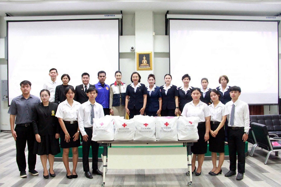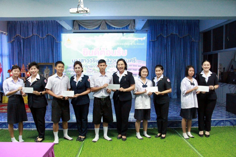 ในการนี้ นายกเหล่ากาชาดจังหวัดกาญจนบุรีได้กล่าวให้โอวาทแก่นักเรียนทุนฯ พร้อมทั้งมอบเครื่องอุปโภค - บริโภค (ถุงยังชีพ) ผ้าห่มกันหนาว และสนับสนุนเงินสมทบทุนการศึกษาให้กับนักเรียนนักศึกษาอีกด้วย