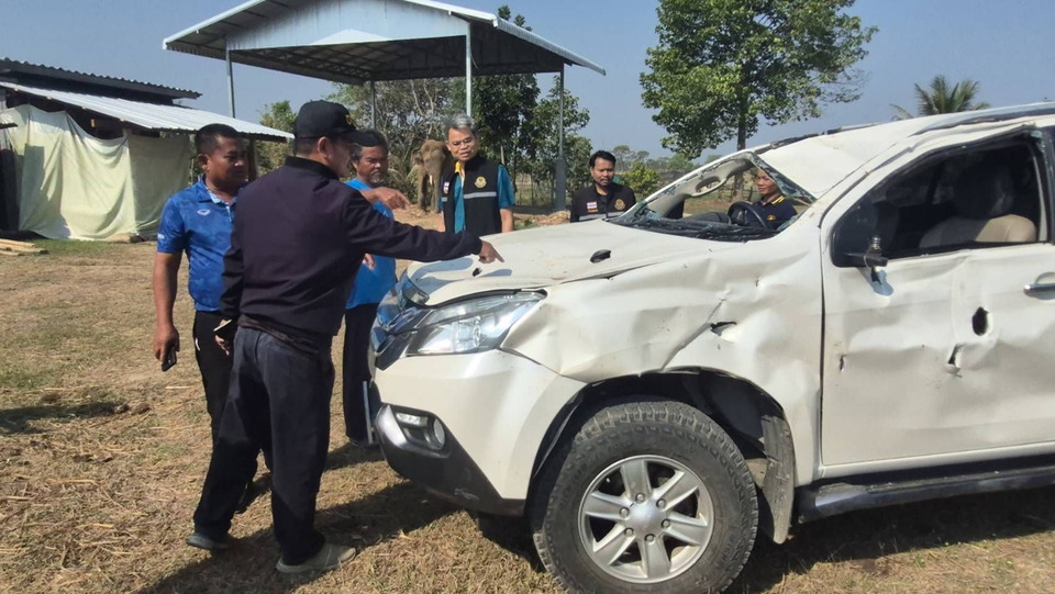 วันที่ 17 ก.พ.69 ผู้สื่อข่าวรายงาน ความคืบหน้า กรณีที่ช้าง เพศผู้ “พลายเพชรอุทัย” อายุ 19 ปี ที่มีอาการตกมัน ทำร้ายนายสมพร อายุ 35 ปี ซึ่งเป็นเจ้าของ หรือควานช้าง ได้รับบาดเจ็บสาหัส ทั้งยังใช้งาพังรถยนต์ ยี่ห้ออีซูซุ รุ่นมิวเอ็ก สีขาว ซึ่งเป็นของควานช้างเพศเมียที่นำไปผสมพันธุ์ และรถกระบะอีซูซุ สีเขียว ซึ่งเป็นของชาวบ้านในนหมู่บ้านที่เข้าไปช่วยเหลือคนเจ็บส่งโรงพยาบาล พังเสียหายรวม 2 คัน และยังมีป้ายทางหลวงได้รับความเสียหายอีก 5 ต้น เหตุเกิดที่บ้านโนนธาตุ หมู่ 6 ต.ท่าม่วง อ.สตึก จ.บุรีรัมย์ เมื่อเวลาประมาณ 11.30 น.วันที่ 16 ก.พ.69 ที่ผ่านมา