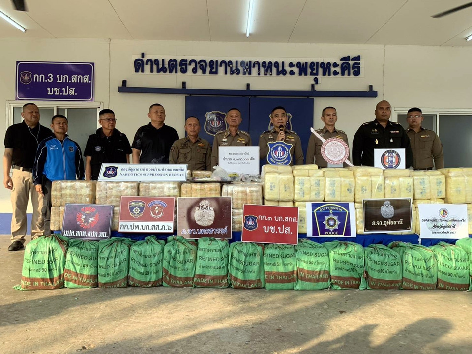 เมื่อเวลา 16.30 น. วันที่ 17 ก.พ.69 ที่ด่านตรวจยานพาหนะพยุหะคีรี จังหวัดนครสวรรค์ กองบังคับการสกัดกั้นการลำเลียง ยาเสพติด ภายใต้การอำนวยการ ของ พล.ต.ต.วิทัศน์ บริรักษ์ ผบก.สกส. พ.ต.อ สมบูรณ์ ทองลอย รองผบก.ภจว.อน. พ.ต.อ.อังคาร อุทัยพันธ์ ผกก. สภ.บ้านไร่ ได้ร่วมกันแถลงข่าว ร่วมกันจับกุมยาบ้า จำนวน 8,394,000 เม็ด