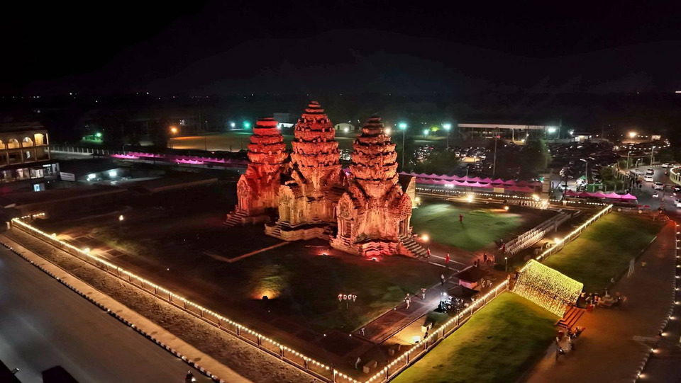 นทท.ต่างชื่นชม ความงดงาม พระปรางค์สามยอด ยามค่ำคืน ซึ่งเป็นโบราณสถานอันศักดิ์สิทธิ์แห่งละโว้ธานี ที่สำคัญที่สุดแห่งหนึ่งในจังหวัดลพบุรี ที่มีเพียงปีละครั้ง ในช่วงการจัดงานแผ่นดินสมเด็จพระนารายณ์มหาราช และเปิดให้เช้าชมฟรีด้วย