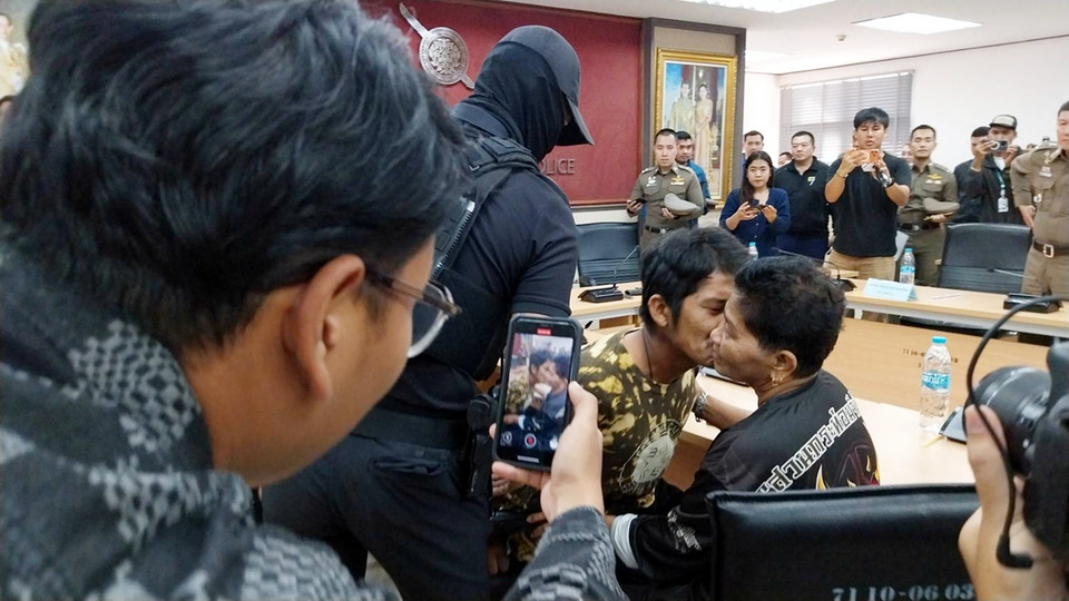 ขณะเดียวกันนายนพรัตน์ หรือแอล ได้เข้าโอบกอดมารดา ก่อนที่เจ้าหน้าที่ตำรวจจะอ่านหมายจับเพื่อจับกุมตัวกลับไปดำเนินคดีที่ สภ.ลาดหลุมแก้ว