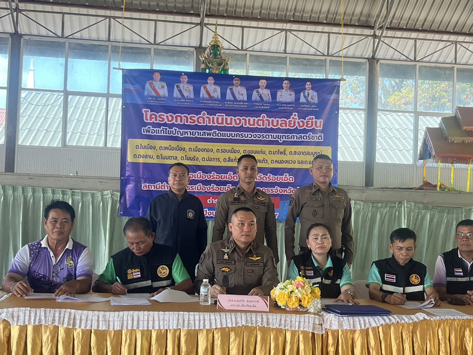 วันนี้ 18 กุมภาพันธ์ 2569 เวลา 09.00 น. พ.ต.อ.ณปภัช สงเคราะห์ ผกก.สภ.เมืองร้อยเอ็ด,พ.ต.ท.นครินทร์ ศรีอัครวิเนต รอง ผกก.ป.สภ.เมืองร้อยเอ็ด,พ.ต.ท.สมโภช แสวงแก้ว รอง ผกก.สส.สภ.เมืองร้อยเอ็ด,พ.ต.ท.ชนินทร์ บุญสา สวป.สภ.เมืองร้อยเอ็ด ร่วมโครงการดำเนินงานตำบลยั่งยืน เพื่อแก้ไขปัญหายาเสพติดแบบครบวงจรตามยุทธศาสตร์ชาติ (สถานีตำรวจภูธรเมืองร้อยเอ็ด) โดยมี นายอำเภอเมืองร้อยเอ็ด,นายกเทศมนตรีตำบลสีเเก้ว,กำนันฯ,ผอ.รพ.ร้อยเอ็ด, สาธารณสุขตำบลฯ บูรณาการร่วม อาสาสมัครสาธารณสุขประจำหมู่บ้านฯ ณ ศาลาวัดบ้านเมืองสีเเก้ว หมู่.1 ต.สีแก้ว อ.เมือง จ.ร้อยเอ็ด ทั้งนี้ โครงการฯมีวัตถุประสงค์ ดังนี้ 1.เพื่อพัฒนาการดำเนินงานชุมชนยั่งยืนในการแก้ไขปัญหายาเสพติดแบบบูรณาการครบวงจร 2. เพื่อให้เกิดกระบวนการป้องกัน แก้ไข และการบำบัดยาเสพติดโดยการมีส่วนร่วมของภาคีเครือข่ายในชุมชน 3. เพื่อสร้างรูปแบบการดำเนินงานชุมชนเข้มแข็ง ในการแก้ไขปัญหายาเสพติดอย่างยั่งยืน