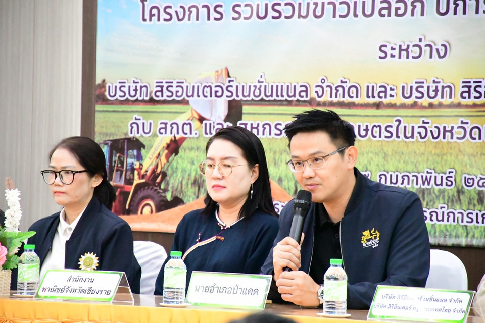 วันที่ 19 ก.พ.69 ที่ สหกรณ์การเกษตรป่าแดด จำกัด อำเภอป่าแดด จังหวัดเชียงราย นายขวัญตระกูล หาญกล้า นายอำเภอป่าแดด เป็นสักขีพยานในพิธีลงนามบันทึกข้อตกลงความร่วมมือ (MOU) โครงการรวบรวมข้าวเปลือก ปีการผลิต 2569/2570 ระหว่าง บริษัท สิริอินเตอร์เนชั่นแนล จำกัด และ บริษัท สิริอินเตอร์กรุ๊ปประเทศไทย จำกัด กับสหกรณ์การเกษตรในจังหวัดเชียงรายและจังหวัดพะเยา เพื่อพัฒนาระบบตลาดข้าวอย่างเป็นธรรมและยั่งยืน