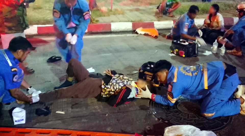 ที่เกิดเหตุเป็นฝั่งขาเข้ากรุงเทพฯ พบรถ จยย. ฮอนด้าชุปเปอร์คัพ สีน้ำเงิน ทะเบียนนครปฐม และ จยย.ยามฮ่า มีโอ สีฟ้าอ่อน ทะเบียน กทม. ทั้ง 2 คันล้มคว่ำอยู่ มีผู้ได้รับบาดเจ็บ 2 ราย คือ น.ส.สุจิน (ขอสงวนนามสกุล) อายุ 59 ปี บ้านอยู่ อ.เมืองนครปฐม จ.นครปฐม ข้อมือ และข้อขาขวาหัก มีอากาปวดหัว และนายคติณัฏฐ์ (ขอสงวนนามสกุล) อายุ 19 ปี บ้านอยู่ ต.บ้านใหม่ อ.สามพราน จึงช่วยปฐมพยาบาลเบื้องต้นและนำส่งโรงพยาบาลสามพราน 2 ราย