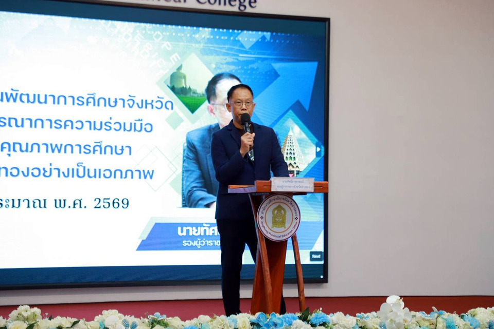 วันที่ 19 ก.พ.69 เวลา 09.00 น. ณ หอประชุมวิทยาลัยเทคนิคอ่างทอง อ.เมืองอ่างทอง นายทัศนัย สุธาพจน์ รองผู้ว่าราชการจังหวัดอ่างทอง เป็นระธานในพิธีเปิดโครงการจัดทำแผนพัฒนาการศึกษาจังหวัดผ่านกลไกการบูรณาการความร่วมมือ เพื่อยกระดับคุณภาพการศึกษาของจังหวัดอ่างทองอย่างเป็นเอกภาพและมอบนโยบายการศึกษาของจังหวัดอ่างทอง โดยมีผู้ทรงคุณวุฒิในคณะกรรมการศึกษาธิการจังหวัดอ่างทอง ผู้บริหาร คณะกรรมการจัดทำแผนพัฒนาการศึกษาจังหวัดอ่างทอง หัวหน้าส่วนราชการ สภาเด็กและเยาวชนจังหวัดอ่างทอง เข้าร่วมโครงการฯ