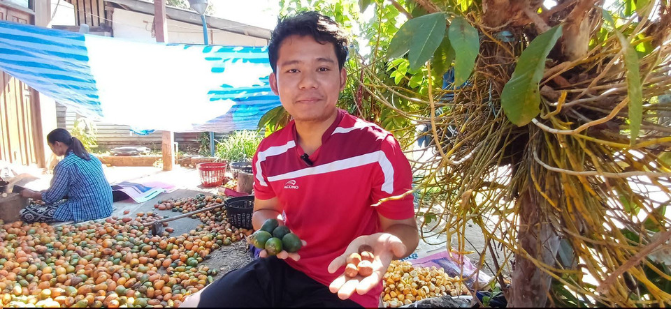 นายวัชรพล อาญาอรพิน หรือเปาะ เกษตรกรชาวบ้านหมู่ 9 บ้านเปิ่งเคลิ่ง ผู้จบการศึกษาจากมหาวิทยาลัยพะเยา คณะศิลปศาสตร์ สาขาภาษาอังกฤษ กล่าวว่า ครอบครัวปลูกหมากมากว่า 10 ปี มีพื้นที่กว่า 30 ไร่ ปีนี้ต้องช่วยแม่เก็บหมากมาตากแห้ง เพราะขายหมากสดไม่ได้เหมือนเดิม ค่าจ้างเก็บ 100 ลูก 6 บาท ค่าปลอกเปลือก 100 ลูก 5 บาท ยังต้องตากแดดอีกประมาณ 1 เดือนกว่าจะขายได้ แต่ช่วงนี้ไม่มีพ่อค้ามาซื้อเลย ซึ่งถือเป็นสิ่งที่หนักใจมาก เพราะเมื่อรวมค่าแรงตาก ค่าแรงคัดแยก และค่าขนส่ง ต้นทุนแทบจะกินราคาขายไปหมด เหลือกำไรเพียงเล็กน้อย หรือบางครั้งแทบไม่เหลือเลยพ่อค้าหาย สต็อกล้นหมู่บ้าน