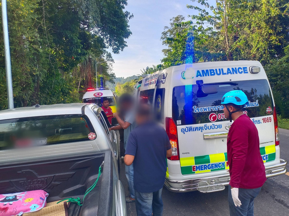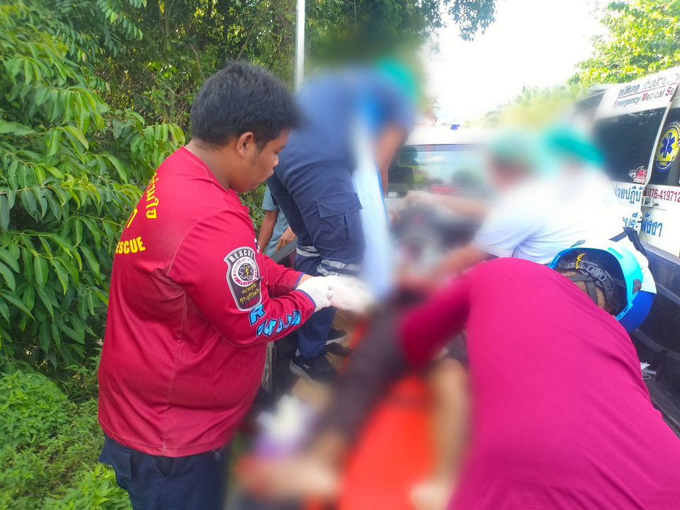 เจ้าหน้าที่กู้ภัยมูลนิธิระนองสงเคราะห์ ให้การช่วยเหลือ ปฐมพยาบาลจุดเกิดเหตุ