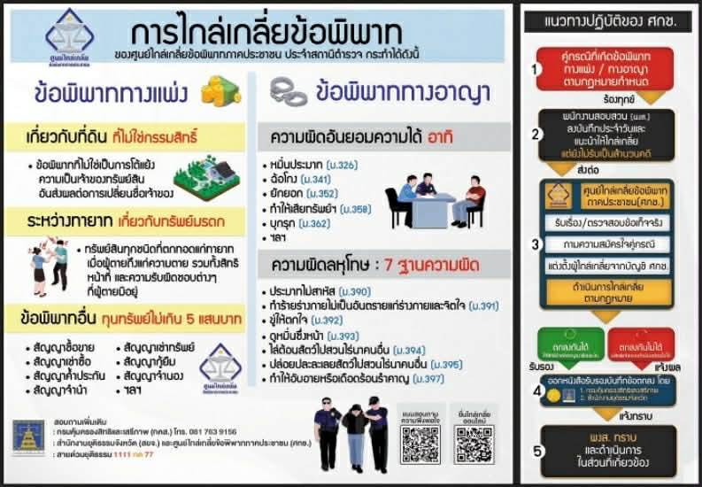 วันที่ 20 กุมภาพันธ์ 2569 เวลา 10:00 น. ที่สถานีตำรวจภูธรบางสะพาน อำเภอบางสะพาน จังหวัดประจวบคีรีขันธ์ ได้มีการประชุมเปิดตัว “ศูนย์ไกล่เกลี่ยภาคประชาชน สภ.บางสะพาน” อย่างเป็นทางการ พร้อมประชุมคณะทำงานบริหารประจำศูนย์ฯ ครั้งแรก เพื่อกำหนดทิศทางการดำเนินงานประจำปี การประชุมมี พ.ต.ท.ทรงศักดิ์ ขาวแพง เป็นประธาน โดยมี นายเอกนิรันดร์ จันทร์งาม นายกเทศมนตรีเทศบาลตำบร่อนทอง นายพิสิษฐ์ รื่นเกษม นายชนิด ยอดแก้ว และที่ปรึกษา เข้าร่วมอย่างพร้อมเพรียง โดยมีวัตถุประสงค์เพื่อรวบรวมปัญหา อุปสรรคในการทำงาน และวางแนวทางขับเคลื่อนการไกล่เกลี่ยข้อพิพาทในระดับชุมชน ทั้งนี้ที่ประชุมได้มีการรายงานถึงสถานการณ์ปัจจุบันในพื้นที่อำเภอบางสะพานมีคดีเกิดขึ้นจำนวนมาก บางส่วนสามารถเข้าสู่กระบวนการไกล่เกลี่ยได้ แต่ประชาชนจำนวนหนึ่งยังไม่ทราบสิทธิและช่องทางดังกล่าว ส่งผลให้ภาระงานในชั้นสอบสวนและศาลเพิ่มสูงขึ้น นอกจากนี้ ห้องไกล่เกลี่ยที่ตั้งอยู่ชั้น 3 ของอาคาร สภ.บางสะพาน ยังสร้างความไม่สะดวกแก่ผู้สูงอายุและผู้พิการในการเข้ารับบริการ