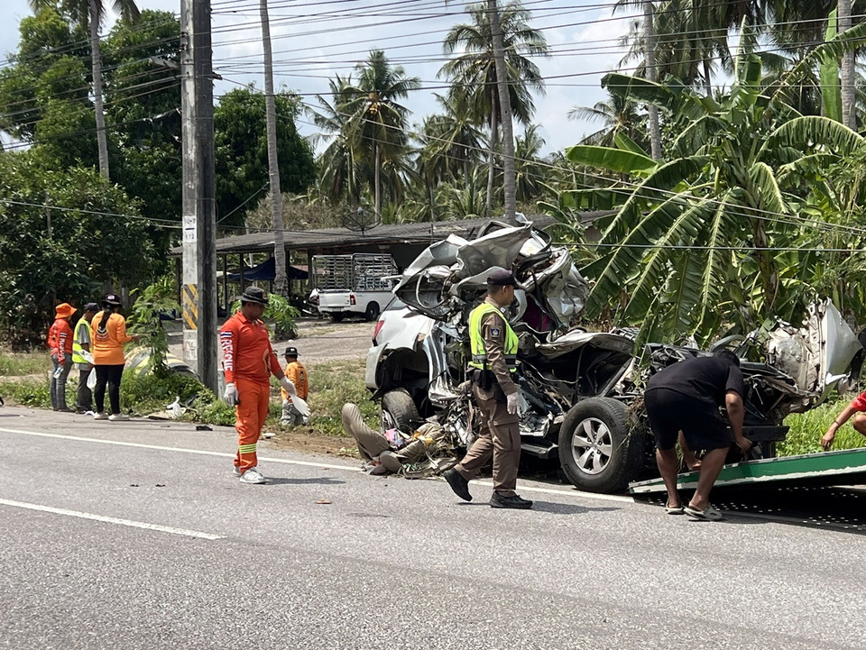รถฟอร์จูนเนอร์เสียหลักพุ่งชนเสาไฟฟ้าริมถนนเพชรเกษม อ.บางสะพาน เสียชีวิตยกคัน 4 ราย รวมเด็กชายวัย 2 ขวบ ตำรวจเร่งตรวจสอบสาเหตุ คาดอาจหลับในหรือมีรถตัดหน้า
