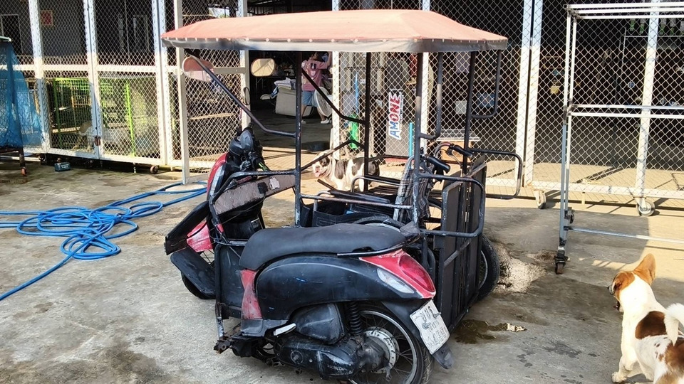 ต่อมาเวลา 10.00 น. วันที่ 23 ก.พ.69 ผู้สื่อข่าวได้ลงพื้นที่บริเวณคลองบางงู หมู่ 6 ตำบลเจ็ดเสมียน ใกล้ศาลพ่อปู่ปักเซ สิ่งศักดิ์สิทธิ์ที่ชาวบ้านเคารพนับถือ พบรถจักรยานยนต์ดัดแปลงเป็นสามล้อมีหลังคา สีแดง ยี่ห้อ Yamaha Fino ทะเบียนอุดรธานี จอดอยู่ในที่เกิดเหตุ สภาพล้อหน้าแตก และมีการติดตั้งวีลแชร์เป็นที่นั่งคนขับ นอกจากนี้ยังพบสายรัดนิรภัยสีดำ และถุงพลาสติกของผู้พิการจมอยู่ในคลอง