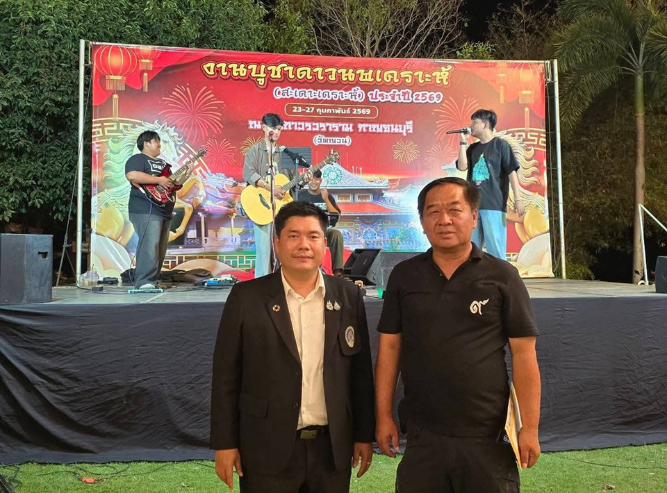 เมื่อวันที่ 23 ก.พ.69 ณ เวทีกลาง วัดถาวรวราราม (วัดญวน) จังหวัดกาญจนบุรี สาขาวิชาดนตรีศึกษา คณะมนุษยศาสตร์และสังคมศาสตร์ มหาวิทยาลัยราชภัฏกาญจนบุรี ได้นำท่วงทำนองแห่งความสร้างสรรค์เข้าร่วมเป็นส่วนหนึ่งของงานประเพณีระดับจังหวัด ในกิจกรรมการแสดงดนตรีและขับร้องเพลง เนื่องในงาน “บูชาดาวนพเคราะห์ และพิธีปิดทองพระพุทธสถาพรมงคล (หลวงพ่อโต จำลอง) ประจำปี 2569” การผสานศาสตร์ดนตรีสู่พันธกิจสัมพันธ์เพื่อชุมชน