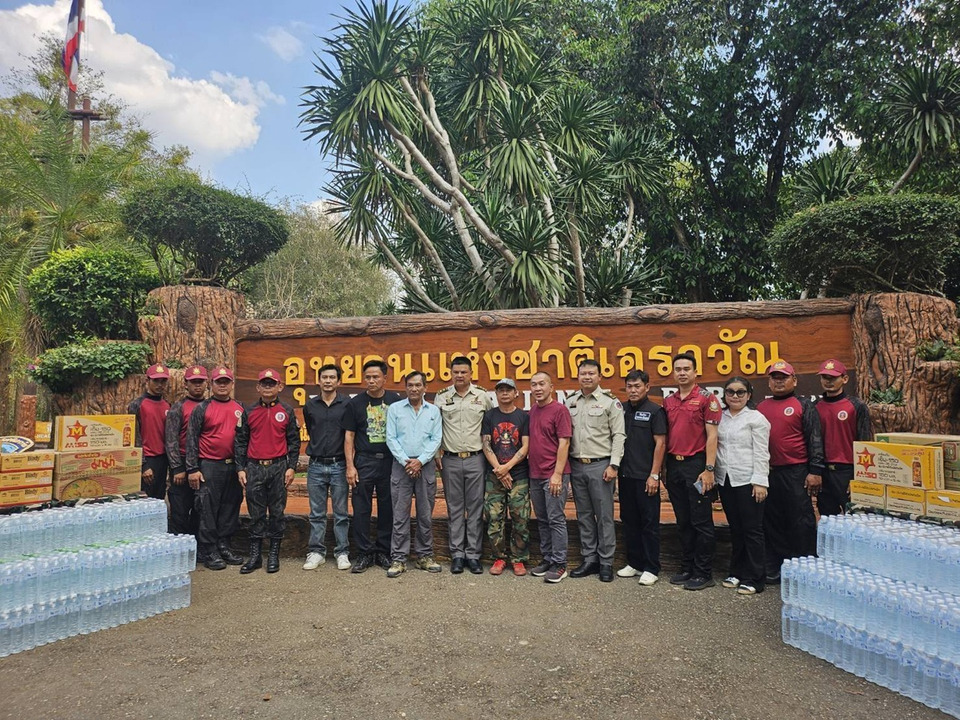 คณะสื่อมวลชนกาญจนบุรีนำเครื่องดื่มชูกำลัง อาหารแห้ง และน้ำดื่มกว่า 1,000 ขวด มอบเจ้าหน้าที่อุทยานแห่งชาติเอราวัณ เสริมกำลังใจสู้ไฟป่าช่วงฤดูแล้ง พร้อมย้ำความร่วมมือทุกภาคส่วนช่วยลดจุดความร้อนอย่างเห็นผล