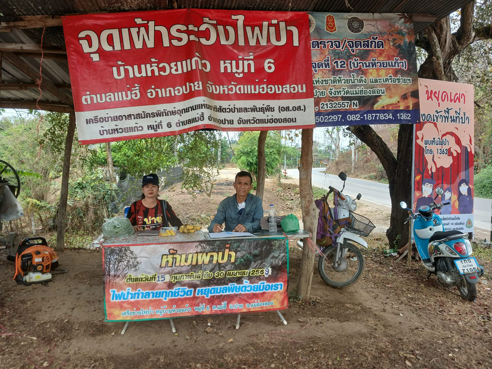 ในส่วนของอำเภอปาย ในห้วงฤดูร้อนมักจะมีการลอบเผาป่าเป็นจำนวนมาก ส่วนใหญ่เป็นการเผาป่าเพื่อเก็บหาของป่า จำพวก ผักหวานป่า ซึ่งมีราคาดี ในห้วงผักหวานป่าออกใหม่ จะมีราคา กก.ละ 250-300 บาททำให้มีการลอบเผาป่าอย่างต่อเนื่อง ทางหมู่บ้านห้วยแก้วจึงได้มีการประชาสัมพันธ์ให้ราษฎรในหมู่บ้านช่วยกันเป็นหูเป็นตาและป้องกันการลักลอบเผาป่าอย่างเข้มงวด