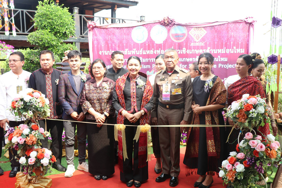วันที่ 24 กุมภาพันธ์ 2569 ที่ กลุ่มหม่อนไหม “แพรวาโสภารักษ์” ต.โนนศิลา อ.สหัสขันธ์ จ.กาฬสินธุ์ นางสาวชนชนก จันทร์เพ็ง รองอธิบดีกรมหม่อนไหม กระทรวงกระเกษตรและสหกรณ์ เป็นประธานเปิดแหล่งท่องเที่ยวเชิงเกษตรด้านหม่อนไหม ให้กับ นายวิทวัส โสภารักษ์ ประธานกลุ่มแพรวาโสภารักษ์ โดยมี นางพรพิณี บุญบันดาล ผอ.สำนักอนุรักษ์และตรวจสอบมาตรฐานหม่อนไหม กระทรวงเกษตรและสหกรณ์ พร้อมด้วยผู้แทนจากกรมหม่อนไหม หัวหน้าส่วนราชการและผู้นำท้องถิ่นร่วมเป็นสักขีพยาน