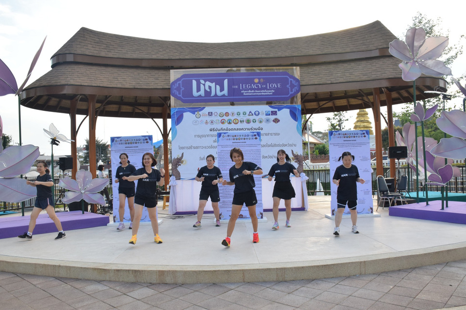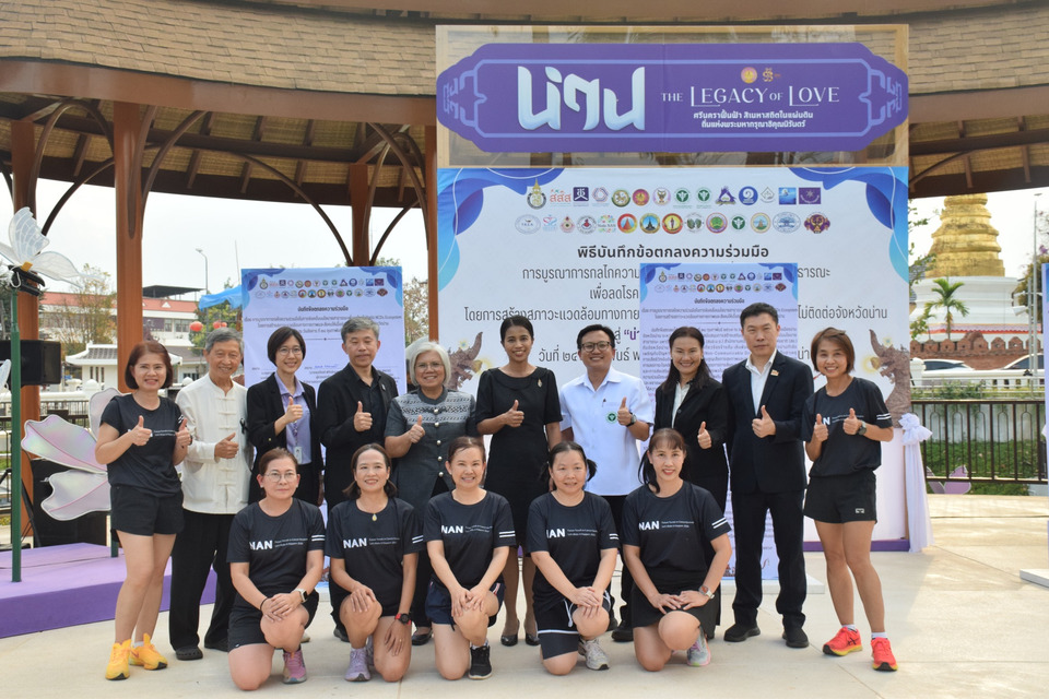 กิจกรรมสำคัญภายในงานประกอบด้วย การประกาศเจตนารมณ์ความร่วมมือ การลงนามบันทึกข้อตกลง และกิจกรรมส่งเสริมการเคลื่อนไหวร่างกาย ทั้งดนตรี ศิลปะ และกีฬา เปิดพื้นที่ให้ประชาชนทุกช่วงวัยได้มีส่วนร่วม สร้างความตระหนักรู้ และจุดประกายการดูแลสุขภาพด้วยตนเอง สำหรับเป้าหมายหลักของความร่วมมือในครั้งนี้ คือ การกำหนดให้การลดโรค NCDs เป็นวาระสำคัญของจังหวัด การออกแบบสภาพแวดล้อมที่เอื้อต่อสุขภาพในระดับชุมชน การสนับสนุนกิจกรรมทางกายในทุกภาคส่วน ตลอดจนการพัฒนาพื้นที่ต้นแบบ และขยายผลเชิงนโยบายอย่างต่อเนื่อง โดยจังหวัดน่านและภาคีเครือข่ายคาดหวังว่า ความร่วมมือครั้งนี้จะเป็นกลไกสำคัญในการยกระดับคุณภาพชีวิตของประชาชน ลดภาระโรคเรื้อรังในระยะยาว และนำไปสู่เป้าหมาย “น่านน่าอยู่ เมืองสุขภาพดี” อย่างเป็นรูปธรรมและยั่งยืนต่อไป