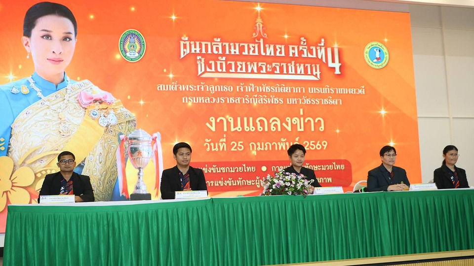 วันที่ 25 ก.พ.69 อาจารย์ ดร.บารมี ชูชัย คณบดีวิทยาลัยมวยไทยศึกษาและการแพทย์แผนไทย เป็นประธานการแถลงข่าวจัดแข่งขันต้นกล้ามวยไทย ครั้งที่ 4 ประจำปี 2569 ที่ห้องประชุมรัตนาวดี ชั้น 4 อาคารโรงเรียนสาธิตแห่งมหาวิทยาลัยราชภัฏหมู่บ้านจอมบึง ชิงถ้วยพระราชทานสมเด็จพระเจ้าลูกเธอ เจ้าฟ้าพัชรกิติยาภา นเรนทิราเทพยวดี กรมหลวงราชสาริณีสิริพัชร มหาวัชร ราชธิดา โดยมีคณะผู้บริหารวิทยาลัยมวยไทยศึกษาและการแพทย์ แผนไทย ประธานสาขาวิชามวยไทยศึกษาและพลศึกษา สาขาวิชาสาธารณสุขศาสตร์ สาขาวิชาการแพทย์แผนไทยร่วมการแถลงข่าวในครั้งนี้