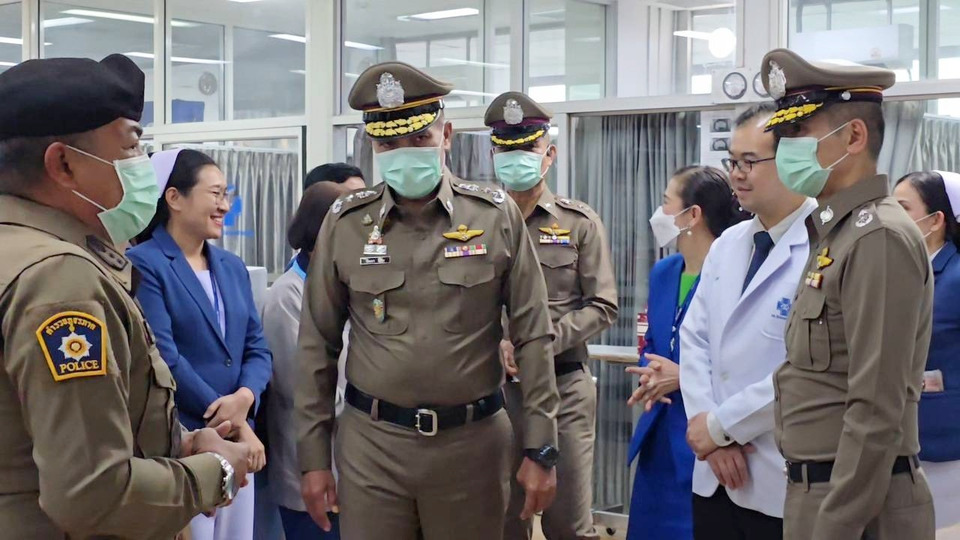ต่อมาเวลา 11.50 น. ที่โรงพยาบาลแห่งหนึ่ง จ.นนทบุรี พล.ต.ท.วัฒนา ยี่จีน ผบช.ภ.1 , พล.ต.ต.เดชรพี คงดี ผบก.ภ.จว.นนทบุรี , พ.ต.อ.พฤฒ จำรูญศาสน์ ผกก.สภ.รัตนาธิเบศร์ ได้เดินทางมาเยี่ยมนายธนพล อายุ 55 ปี ผู้บาดเจ็บ ที่ยังคงรักษาตัวอยู่ในห้องไอซียู โดยได้มีการมอบกระเช้าเพื่อเป็นขวัญและกำลังใจ พร้อมพูดคุยกับผู้เสียหาย ยืนยันให้ความเป็นธรรมอย่างเต็มที่