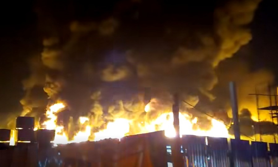 ล่าสุดเวลา 08.15 น.เจ้าหน้าที่ ยังไม่สามารถควบคุมเพลิงได้ เพลิงยังลุกไหม้กองยาง กแงพลาสติก ขนาดใหญ่อย่างต่อเนื่อง