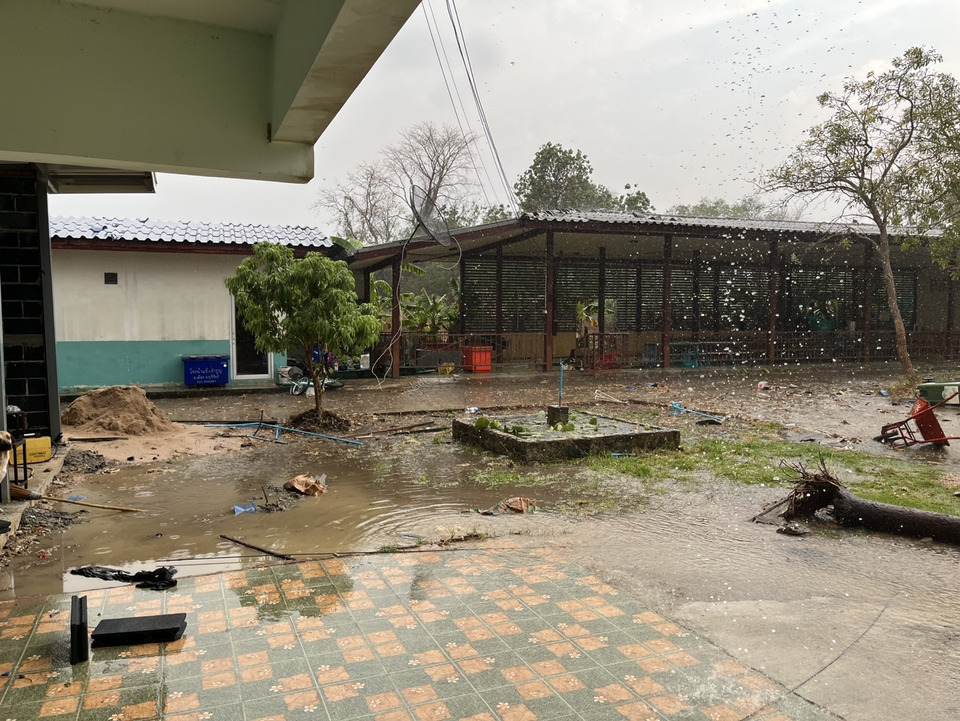 เกิดพายุฤดูร้อนพัดถล่มแค่ 30 นาที ทำให้หลังคาโรงจอดรถโรงเรียนวัดพลับพลา อ.พลับพลาชัย จ.บุรีรัมย์ ทั้งแถบปลิวลอยข้ามรั้วโรงเรียน มากองกีดขวางบนถนนเข้าออกหมู่บ้าน คณะครู เจ้าหน้าที่ และผู้นำชุมชน ต้องช่วยกันเคลื่อนย้ายกลางดึก โดยใช้เวลานานกว่า 3 ชั่วโมง จึงสามารถเปิดทางให้รถสัญจรไปมาได้ตามปกติ ขณะเดียวกันพบว่าอาคารเรียนเสียหายหลายหลัง รวมถึงบ้านเรือนประชาชน พังเสียหายไม่ต่ำกว่า 50 หลังคาเรือน