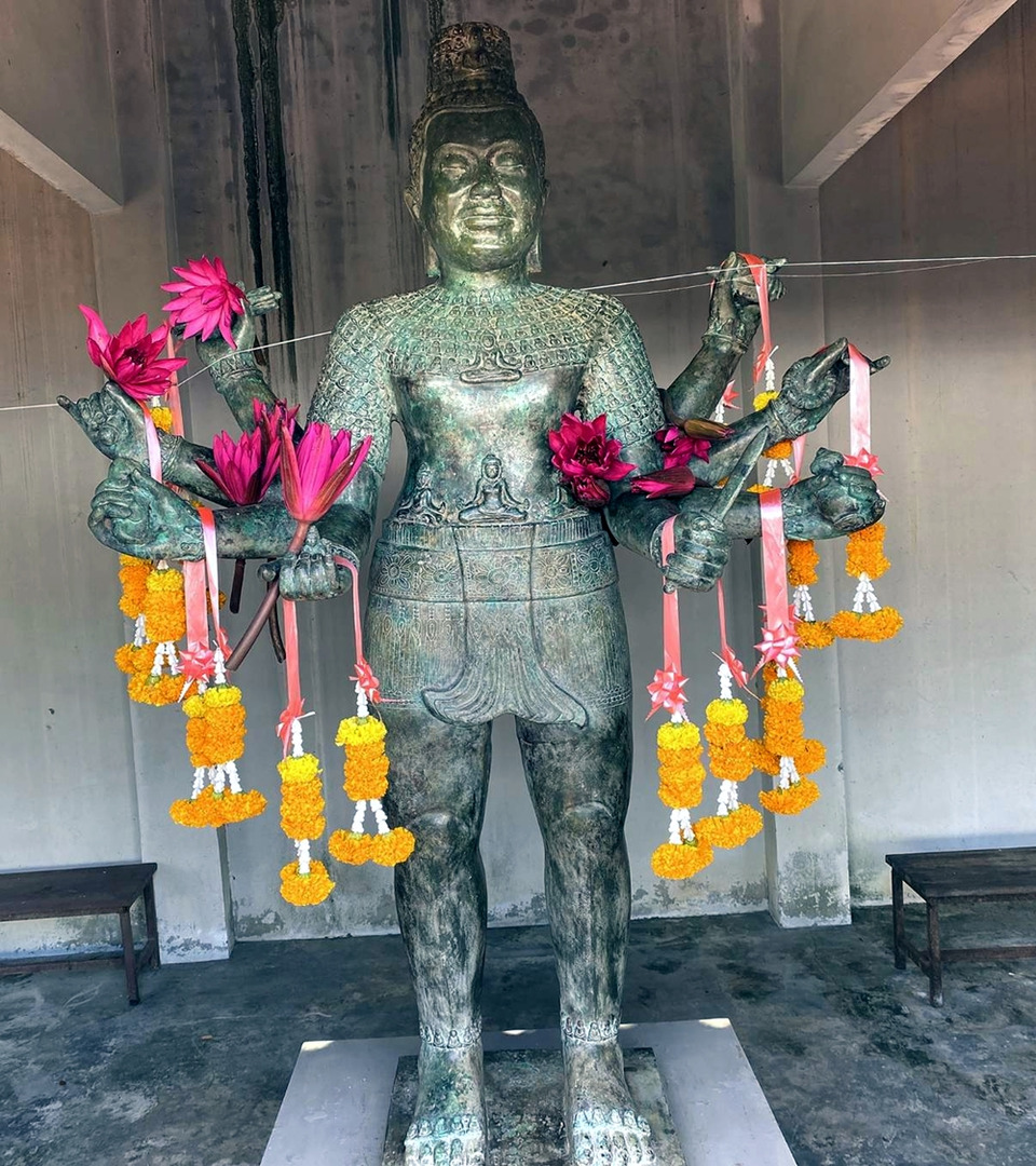 วันที่ 27 ก.พ.69 บริเวณโบราณสถานสระโกสินารายณ์ หมู่ 19 ต.ท่าผา อ.บ้านโป่ง จ.ราชบุรี ดร.ทรงยศ อรัญยกานนท์ นายกเทศมนตรีเมืองท่าผา พร้อมด้วย ดร.ชะวรลัทธิ์ ชินธรรมมิตร อดีต ส.ส.ราชบุรี คณะผู้บริหาร ข้าราชการ พร้อมสมาชิกสภาเทศบาลเมืองท่าผา และประชาชนในพื้นที่ ได้ร่วมพิธีบวงสรวงรูปปั้นจำลอง “พระโพธิสัตว์อวโลกิเตศวร เปล่งรัศมี” สิ่งศักดิ์สิทธิ์คู่เมือง ซึ่งประดิษฐานอยู่บริเวณด้านหน้าพิพิธภัณฑ์ชุมชนสระโกสินารายณ์ ก่อนร่วมกันทำบุญถวายภัตตาหารเพลแด่พระสงฆ์