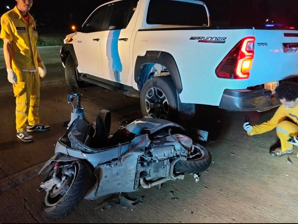 สลดกลางดึก! หนุ่มขี่เวสป้าพุ่งชนกระบะยูเทิร์น ดับคาที่ คนขับญี่ปุ่นยืนรอให้การ