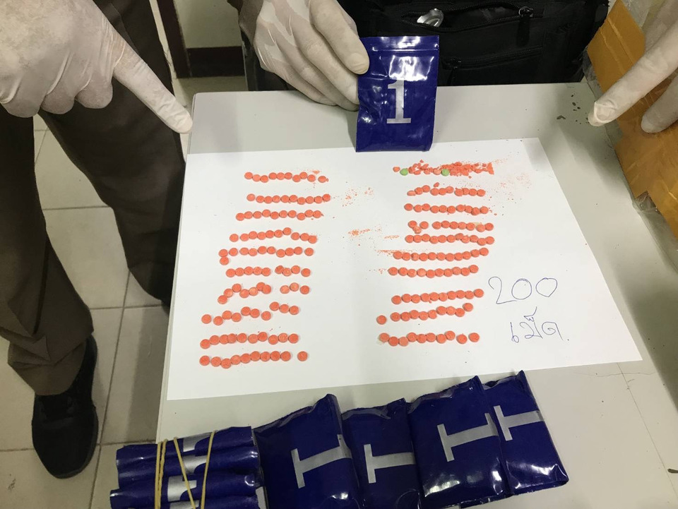 สำหรับการตรวจยึดครั้งนี้ สืบทราบว่าจะมีการลักลอบนำยาเสพติดมาวางทิ้งไว้ในพื้นที่ เจ้าหน้าที่เดินทางถึงจุดที่ได้รับแจ้ง ตรวจพบกระสอบปุ๋ยดัดแปลงจำนวน 2 ใบ วางอยู่ข้างทาง ภายในบรรจุห่อพลาสติกสีดำ เมื่อเปิดตรวจสอบพบห่อปิดผนึกสีเหลืองอ่อน และซ้อนด้วยถุงพลาสติกสีฟ้าขนาดเล็กอีกชั้นหนึ่ง ภายในบรรจุยาเสพติดให้โทษประเภท 1 (เมทแอมเฟตามีน หรือยาบ้า) รวมประมาณ 490,000 เม็ด