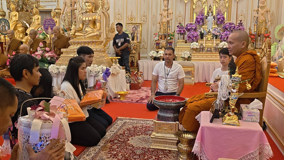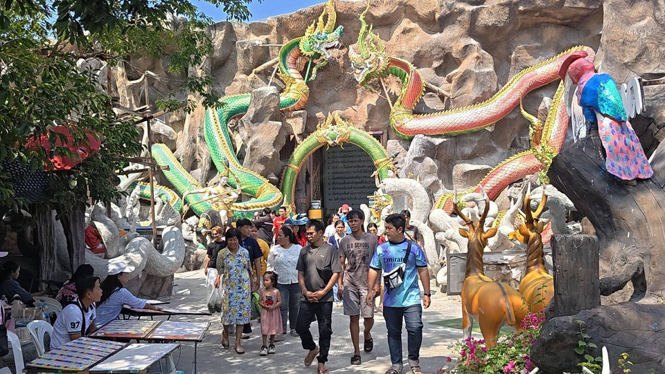วันที่ 3 มี.ค.69 ผู้สื่อข่าวรายงานว่า บริเวณวัดมณีวงศ์ ต.ดงละคร อ.เมือง จ.นครนายกได้มีนักท่องเที่ยว จากทั่วสารทิศ รวมถึง ศิษย์ยานุศิษย์และ สาธุชนคนทำบุญ แห่เที่ยวชม ถ้ำพญานาค กันเป็นจำนวนมาก ซึ่งวัดมีวงศ์ มีรูปปั้นพญานาคมากกว่า 1,000 ตัว ซึ่งประดิษฐานอยู่ภายใน "วังรัตนมณีมหานครบาดาลนาคราช" หรือถ้ำพญานาคจำลองที่สร้างขึ้นอย่างอลังการ วิจิตรงดงามด้วยพญานาค 4 ตระกูล พร้อมบริวาร ถือเป็นแลนด์มาร์คสำคัญของนครนายกที่ขึ้นชื่อเรื่องความสวยงามและศักดิ์สิทธิ์ ทั้งนี้นักท่องเที่ยวก็พลาดไม่ได้รวมถึงสาธุชนคนทำบุญ ขอเอาฤกษ์เอาชัยในวันพระใหญ่ ต่อคิวยาวเหยียด ให้พระครูปิยรัตนานุกูล (หลวงพี่ต่อ) เจ้าอาวาสวัดมณีวงศ์ ได้ทำการถูกสายสินที่ข้อมือ ที่เชื่อกันว่า ใครที่เดินทางมาที่วัดแห่งนี้แช้ว ได้ผูกสายสินกับหลวงพี่ต่อ ก็จะ ประสบความสำเร็จ และเจริญก้าวหน้าในหน้าที่การงานต่อๆไป