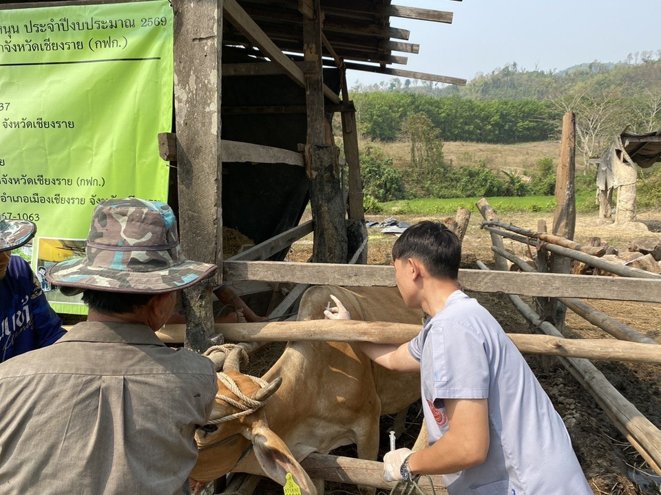 ทั้งนี้ นายชัชชัย ยามี ปศุสัตว์อำเภอดอยหลวง ได้มอบหมายนางพัชรินพร พรหมมินทร์ เจ้าพนักงานสัตวบาล ว่าที่ร้อยตรี พรเทพ ลาศนันท์ เจ้าพนักงานสัตวบาล และเจ้าหน้าที่สำนักงานปศุสัตว์อำเภอดอยหลวง ดำเนินการติดเบอร์หูประจำตัวสัตว์ / ฉีดวัคซีนป้องกันโรคปากเท้าเปื่อย และวัคซีนป้องกันโรคลัมปีสกิน ให้กับวัวแม่พันธุ์ของเกษตรกร ด้วย