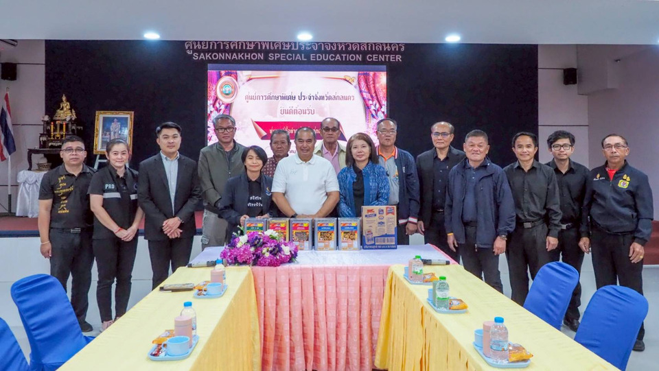วันที่ 5 มีนาคม 2569 ที่ศูนย์การศึกษาพิเศษ อ.เมือง จ.สกลนคร นายเอกภพ โสภณ รอง ผวจ.สกลนคร เป็นประธานเลี้ยงอาหารกลางวันแก่เด็กพิเศษ โดยมี น.ส.ชนกพร โพธิสาร ประชาสัมพันธ์จังหวัดสกลนคร นายพิชัย ศิริสม ผอ.สวท. สกลนคร นายสถิต สำราญสุข ผอ.สถาบันอาชีวศึดษาภาคตะวันออดเฉียงเหนือ นายวัฒนะ แก้วก่า ประธานผู้สื่อข่าวไทยรัฐ กลุ่มภูพาน นายประทวน ขจรวุฒินันท์ ประธานผู้สื่อข่าวช่อง 7 อีสาน นำสื่อมวลชนเข้าร่วมกิจกรรม โดย น.ส.พนารัตน์ มาลีลัย ผอ.ศูนย์การศึกษาพิเศษ จ.สกลนคร นำเด็กพิเศษมารับอาหาร ปนะกอบด้วย ข้าว แกงจืด ไก่ทอด โดนัท ไอติม ขนมวุ้นถ้วย ขนมถุงสำเร็จรูป เป็นต้น ซึ่งเด็กๆได้รับประทานอย่างเอร็ดอร่อย ศูนย์การศึกษาพิเศษ มีบุคคลากร 116 คน มีเด็กอยู่ในความดูแล 135 คน ส่วนใหญ่เป็นเด็กทุกประเภท มากสุดคือเด็กออทิสติคและเด็กพัฒนาการ ขณะนี้ต้องการความช่วยเหลือจากสังคม เช่น ซ่อมแซมรถเข็นวีลแชร์ ซึ่งได้ประสานงานไปที่วิทยาลัยเทคนิคสกลนครแล้ว จะเข้าดำเนินการเร็วๆนี้