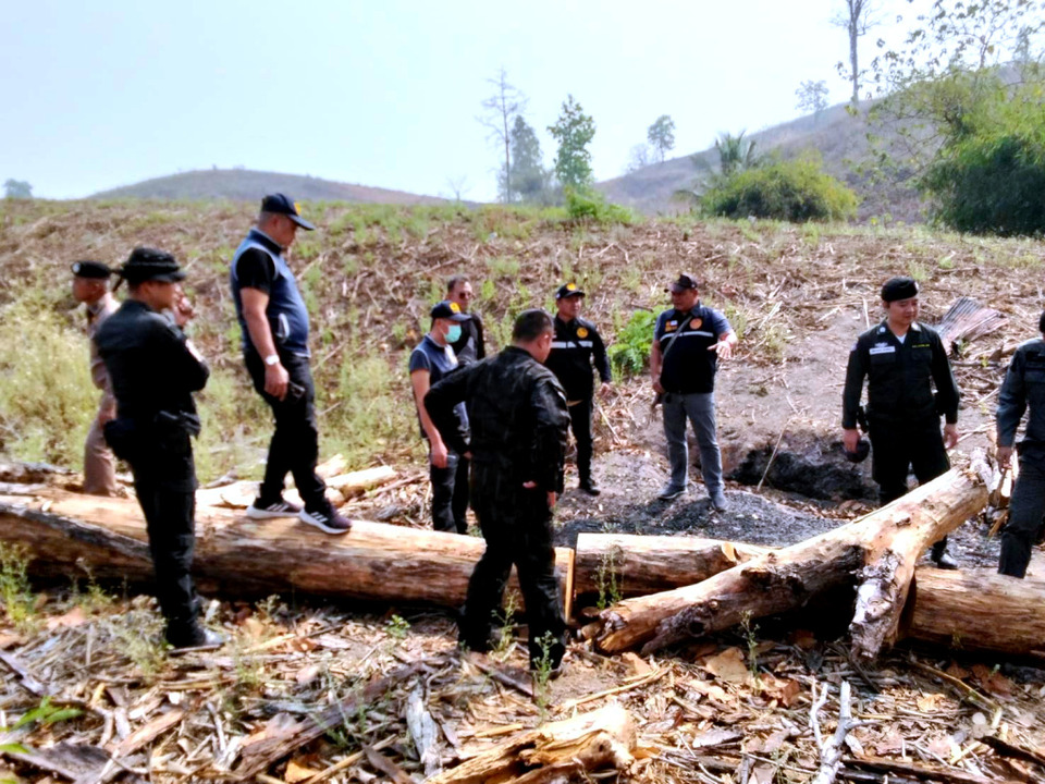 เจ้าหน้าที่หลายหน่วยงานสนธิกำลังเข้าตรวจสอบไร่ข้าวโพดบ้านวาเล่ย์ใต้ อ.พบพระ จ.ตาก หลังพบลักลอบตัดไม้ในป่าสงวนแม่สอด ยึดไม้หวงห้าม 18 ท่อน ปริมาตรกว่า 6.4 ลูกบาศก์เมตร เตรียมขยายผลติดตามผู้กระทำผิดดำเนินคดีตามกฎหมาย