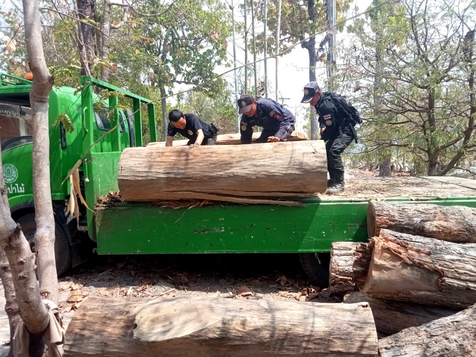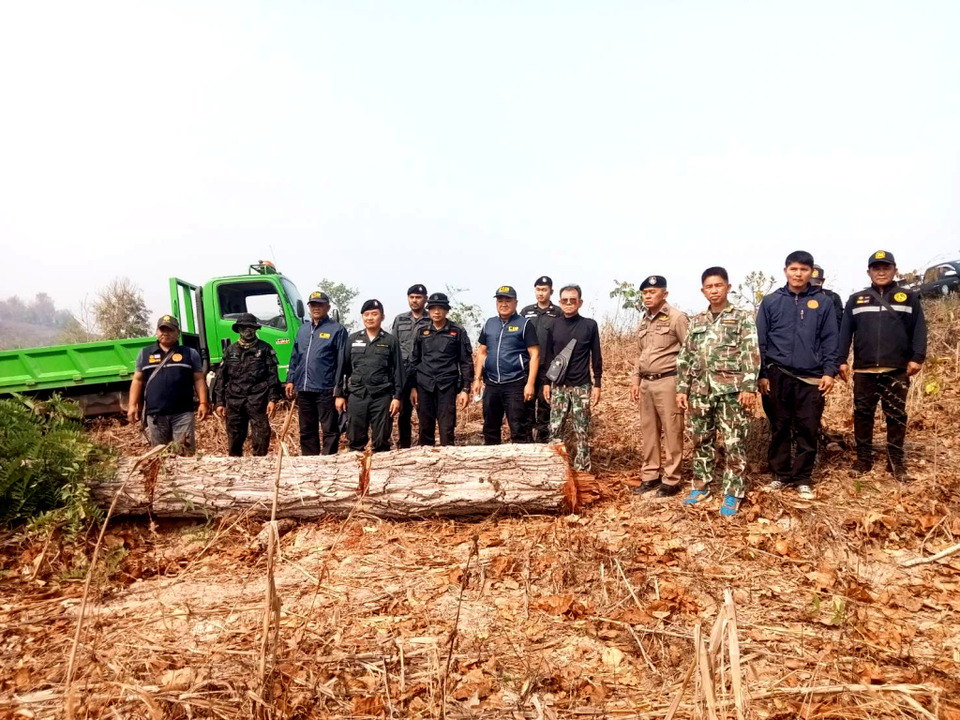 ผลการตรวจสอบพบไม้กระยาเลยซึ่งเป็นไม้หวงห้าม ถูกตัดเป็นท่อนจำนวนมาก ได้แก่ไม้พลวง จำนวน 5 ท่อน ปริมาตร 1.246 ลูกบาศก์เมตร ,ไม้เต็ง จำนวน 5 ท่อน ปริมาตร 0.923 ลูกบาศก์เมตร , ไม้สมอพิเภก จำนวน 8 ท่อน ปริมาตร 4.299 ลูกบาศก์เมตร รวมไม้ของกลางทั้งสิ้น 18 ท่อน ปริมาตรกว่า 6.468 ลูกบาศก์เมตร คาดว่าถูกลักลอบตัดจากพื้นที่ป่าสงวน และนำมาซุกซ่อนรอการขนย้าย