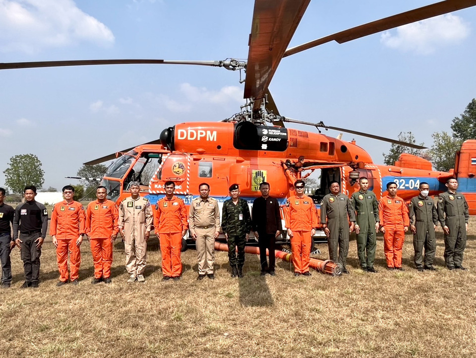 วันที่ 6 มี.ค. 69 เวลา 15.00 น. ที่ กองพลทหารราบที่ 7 อำเภอแม่ริม จังหวัดเชียงใหม่ นายธีรพัฒน์ คัชมาตย์ อธิบดีกรมป้องกันและบรรเทาสาธารณภัย ลงพื้นที่ตรวจเยี่ยมการทำงานของชุดปฏิบัติการบิน ปภ. ซึ่ง ปภ.ได้นำเฮลิคอปเตอร์ป้องกันและบรรเทาสาธารณภัย KA-32 พร้อมนักบิน ฮ.ปภ. 32 และทีมกู้ภัยประจำ ฮ ปภ.32 หรือ The Guardian Team สนับสนุนการป้องกันและแก้ไขปัญหาไฟป่า หมอกควัน และฝุ่นละอองขนาดเล็ก PM 2.5 ในพื้นที่ 17 จังหวัดภาคเหนือ ปฏิบัติการร่วมกับกองทัพภาคที่ 3