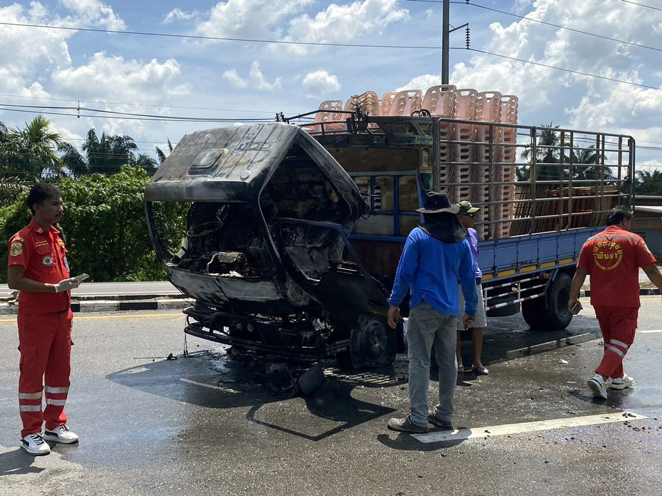 เมื่อเวลาประมาณ 13.06 น. วันที่ 7 มี.ค.69 เจ้าหน้าที่ตำรวจ สถานีตำรวจภูธรทับปุด ได้รับแจ้งจากศูนย์ 191 พังงา ว่าเกิดเหตุเพลิงไหม้รถบรรทุก 6 ล้อ บนถนนเพชรเกษม บริเวณจุดยูเทิร์นหน้าร้านแม่กิมขั้น หมู่ที่ 4 ตำบลทับปุด อำเภอทับปุด จังหวัดพังงา หลังรับแจ้งจึงประสานสายตรวจรถยนต์เข้าตรวจสอบ พร้อมประสานรถดับเพลิงจากเทศบาลตำบลทับปุด และเจ้าหน้าที่กู้ภัยมูลนิธิเพชรเกษมเข้าระงับเหตุ ที่เกิดเหตุพบรถบรรทุก 6 ล้อ ยี่ห้อ Isuzu สีฟ้า ทะเบียนพังงา ถูกเพลิงลุกไหม้ เจ้าหน้าที่ดับเพลิงจึงเร่งฉีดน้ำควบคุมเพลิงจนสามารถดับไฟไว้ได้ในเวลาต่อมา