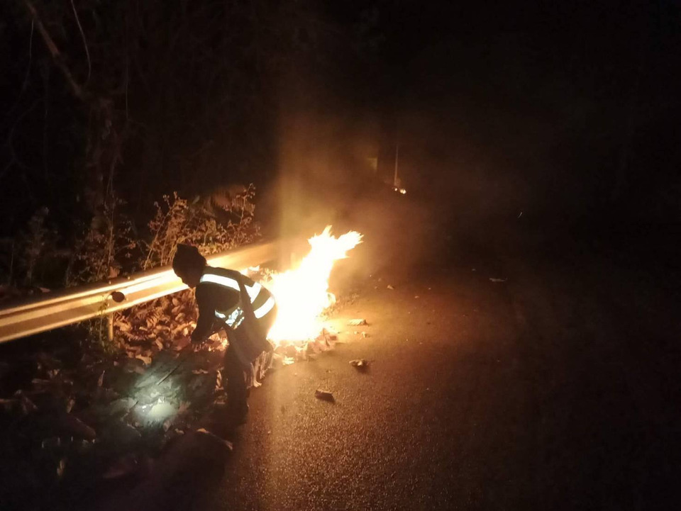 จากนั้น ภายใต้การอำนวยการของ ว่าที่พันตรี ยุทธนา เจ้าดูรี นายอำเภอเมืองแม่ฮ่องสอน/ผู้อำนวยการศูนย์ปฏิบัติการป้องกันและแก้ไขปัญหาไฟป่า หมอกควัน และฝุ่นละออง อำเภอเมืองแม่ฮ่องสอน มอบหมายให้ กลุ่มงานความมั่นคง ประสานไปยังชุดเฝ้าระวังไฟป่าบ้านผาบ่องเหนือ ม. 12 ต.ผาบ่อง ผู้ใหญ่บ้าน, ผู้ช่วยผู้ใหญ่บ้าน ร่วมกับ อบต.ผาบ่อง นำรถน้ำเข้าระงับเหตุไฟป่าริมทางหลวง หมายเลข 108 จำนวน 2 จุด จุดที่1 ห่างจากจุดชมวิว ระยะทาง 1.6 กิโลเมตร , จุดที่2 ห่างจากจุดชมวิว ระยะทาง 400 เมตร สามารถระงับไฟป่าได้ทั้งหมด เสร็จสิ้นภารกิจเวลา 21.06 น.