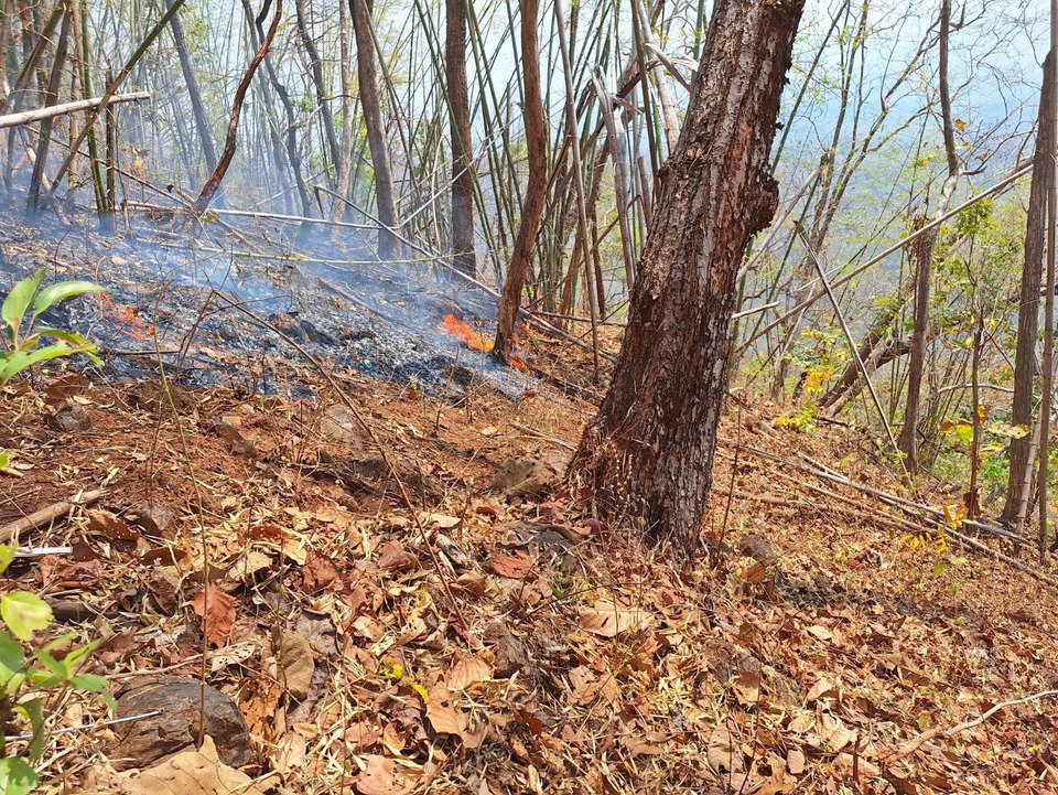 ชุดเฝ้าระวังไฟป่าบ้านผาบ่องเหนือ ต.ผาบ่อง อ.เมืองแม่ฮ่องสอน จ.แม่ฮ่องสอน โดยผู้ใหญ่บ้าน ผู้ช่วยผู้ใหญ่บ้าน ร่วมกับ อบต.ผาบ่อง นำกำลังพลและรถน้ำเข้าดับไฟป่าริมทางหลวง หมายเลข 108ใกล้จุดชมวิวผาบ่อง จำนวน 2 จุด หลังมีการลอบเผาป่าในพื้นที่ท่ามกลางอากาศที่ร้อนในตอนกลางวัน