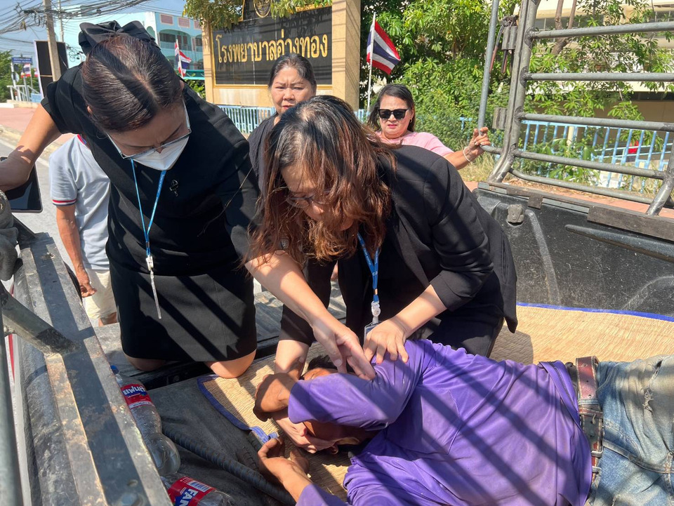 ผู้สื่อข่าววรายงานว่า เมื่อวันที่ 11 มี.ค.69 แพทย์หญิงปาริชาติ ตีระวัฒน์ ผู้อำนวยการโรงพยาบาลอ่างทอง พร้อมด้วยทีมงาน พบผู้ป่วยมีอาการ ชักเกร็งกระตุกนอนอยู่บนหลังรถกระบะ บริเวณถนนสายหลักด้านหน้าโรงพยาบาลอ่างทอง