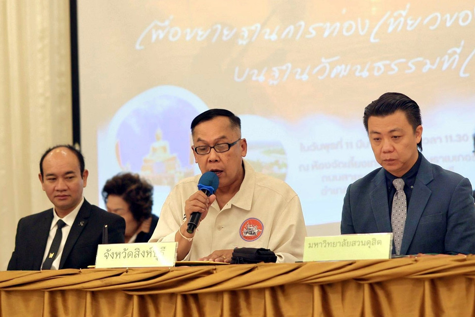 ผู้ว่าราชการจังหวัดสิงห์บุรี เป็นประธานในพิธีลงนามบันทึกข้อตกลงความร่วมมือทางวิชาการ "เพื่อขยายฐานการท่องเที่ยวของจังหวัดสิงห์บุรีบนรากฐานวัฒนธรรมที่เข้มแข็ง" โดยมีผู้บริหารจากสถาบันการศึกษาชั้นนำ อาทิ มหาวิทยาลัยสวนดุสิต, มหาวิทยาลัยศิลปากร (คณะโบราณคดี), มหาวิทยาลัยราชภัฏเทพสตรี พร้อมด้วยหน่วยงานภาครัฐ และภาคเอกชนอย่าง หอการค้าจังหวัด, สภาอุตสาหกรรม, และกลุ่มผู้ประกอบการรุ่นใหม่ (YEC) ร่วมลงนามอย่างพร้อมเพรียง