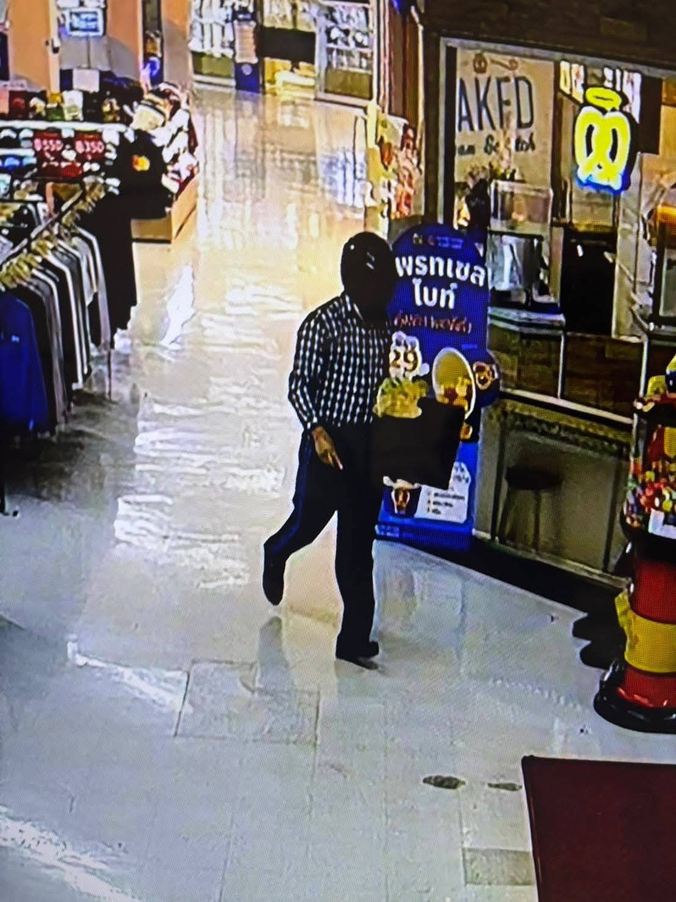นอกจากนี้จากการตรวจสอบกล้องวงจรปิด พบว่ารถจักรยานยนต์คันดังกล่าวได้ขับออกทางด้านข้างของห้างและลักษณะของรถจักรยานยนต์ไม่มีการติดแผ่นป้ายทะเบียน ซึ่งขณะนี้เจ้าหน้าที่ตำรวจได้เร่งทำการติดตามตัวเพื่อติดตามคนร้ายคนดังกล่าวอย่างเร่งด่วนและประกาศให้ทุกพื้นที่ติดตามตัวตามลักษณะรูปพรรณสันฐานที่ได้เห็นแล้ว