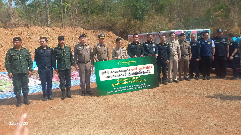 เมื่อวันที่ 12 มีนาคม 2569.นายยอดพล วิชญกุล นายด่านศุลกากรแม่สอด ชายแดนไทย เมียนมา อ.แม่สอด จ.ตาก พร้อมส่วนราชการ ตำรวจ ทหาร ปกครอง พล.ต.ต.ณัฐวุฒิ ภาคภูมิ รองผู้บัญชาการตำรวจภูธรภาค 6. พล.ต.ต.ไพศาล. นันตา ผู้บังคับการตำรวจภูธรจังหวัดตาก นายประเดิม เดชายนต์บัญชา รองผู้ว่าราชการจังหวัดตาก=นายกันต์พงศ์ พิพัฒน์มนตรีกุล นานอำเภอแม่สอด. จ.ตาก พ.ต.อ.ชืนกร อัศวภูมิ ผู้กำกับการด่านตรวจคนเข้าเมืองจังหวัดตาก(ด่านแม่สอด) พ.อ.ชนกานต์ แสงศร ผู้งคับหน่วยเฉพาะกิจราขมนู พ.ต.ท.อำนาจ เมฆสิน รอง ผู้กำกับการสถานีตำรวจภูธรแม่สอด ผู้แทน พ.ต.อ.รัง ดาวดึงษ์ ผู้กำกับการสถานีตำรวจภูธรแม่สอด ฝ่ายปกครองอำเภอแม่สอด หน่วยเฉพาะกิจราชมนู กอ.รมน.ตาก สรรพสามิตพื้นที่ตาก ร่วมแถลงข่าวและทำลายของกลางล็อตใหญ่ มูลค่ากว่า 17 ล้านบาทตาม นโยบาย “Quick Big Win” ของนายอนุทิน ชาญวีรกูลนายกรัฐมนตรีและรัฐมนตรีว่าการกระทรวงมหาดไทย และ ดร.เอกนิติ นิติทัณฑ์ประภาศรองนายกรัฐมนตรีและรัฐมนตรีว่าการกระทรวงการคลัง ที่ได้มอบนโยบายให้กรมศุลกากรเร่งรัดการดำเนินงานให้เห็นผลสัมฤทธิ์อย่างเป็นรูปธรรมตามแนวทาง “Quick Big Win” ของรัฐบาล โดยกรมศุลกากร โดยนายพันธ์ทอง ลอยกุลนันท์ อธิบดีกรมศุลกากร ซึ่งด่านศุลกากรแม่สอดได้ทำลายของกลางที่คดีถึงที่สุดแล้ว ประกอบด้วยบุหรี่ บุหรี่ไฟฟ้า ตู้คีบตุ๊กตาและสินค้าผิดกฎหมายอื่นๆ รวมทั้งสิ้น 149 คดี คิดเป็นมูลค่ารวมกว่า 17 ล้านบาท ณ. หน่วยเฉพาะกิจราชมนู อ.แม่สอด จ.ตาก