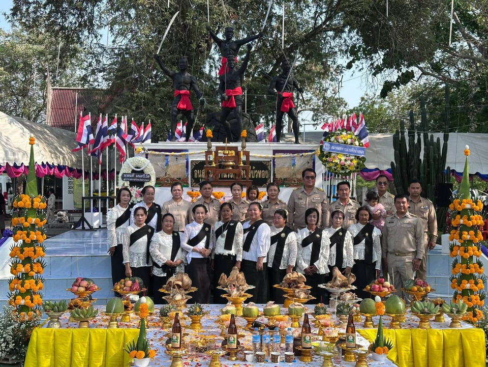 วันที่ 12 มีนาคม 2569 เวลา 07.30 น. ณ อนุสรณ์สถานวีรชนคนแสวงหา ม.4 ต.สีบัวทอง อ.แสวงหา จังหวัดอ่างทอง นางสาวสุกัญญา กุลสุวรรณ์ ปลัดจังหวัดอ่างทอง พร้อมด้วย นายนรินทร์ อร่ามโชติ นายอำเภอแสวงหา ส่วนราชการ ผู้นำท้องถิ่น และประชาชนในพื้นที่ ได้ร่วมกันประกอบพิธีบวงสรวงสิ่งศักดิ์สิทธิ์ เพื่อความเป็นสิริมงคล ก่อนการจัดงาน “สดุดีวีรชนคนแสวงหา” ซึ่งเป็นงานสำคัญของชาวอำเภอแสวงหา ที่จัดขึ้นเพื่อรำลึกถึงวีรกรรมและคุณงามความดีของวีรชนผู้เสียสละในการปกป้องบ้านเมือง