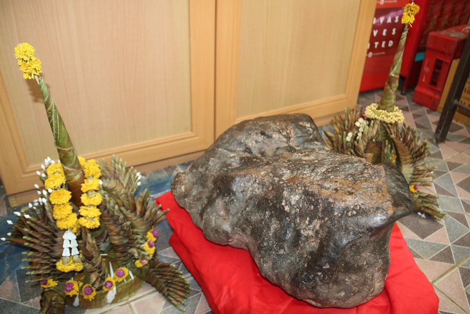 กาฬสินธุ์ฮือฮาเสี่ยใหญ่ค้าของชำเมืองน้ำดำบูชาหินประหลาดคล้ายกบเรืองแสงแห่ขอหวยให้โชค