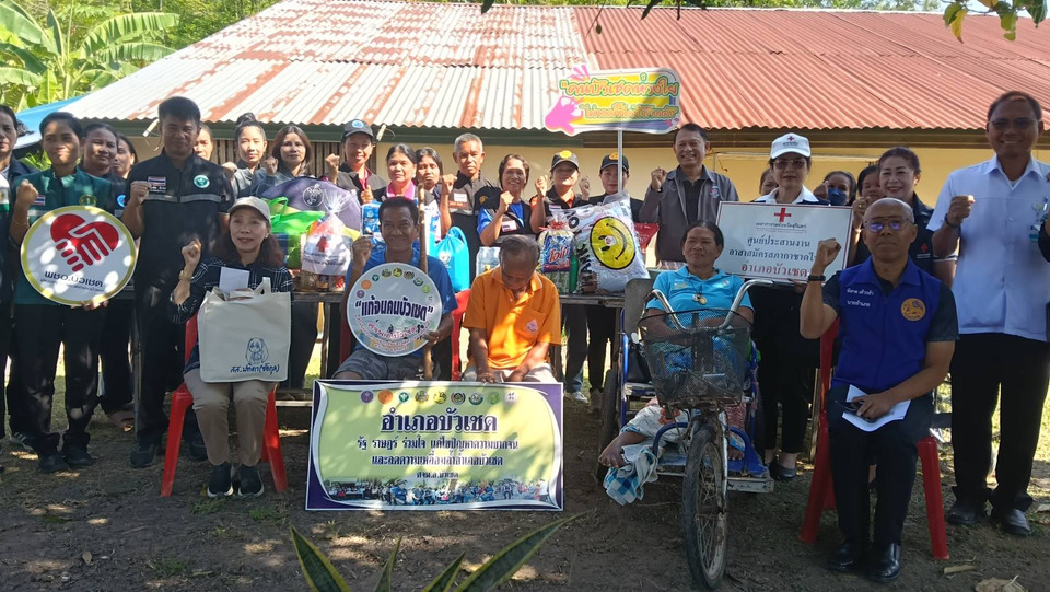 วันที่ 12 มีนาคม 2569 เวลา 11.00 น. นายพิศาล เค้ากล้า นายอำเภอบัวเชด พร้อมด้วย สมาชิกศูนย์ประสานงานฯ สภากาชาดไทย ประจำอำเภอบัวเชด ร่วมกับ นพ.วิชญนนท์ เหล่าอุดม ผู้อำนวยการโรงพยาบาลบัวเชด นายแสงชัย ดีเลิศ สาธารณสุขอำเภอบัวเชด นายราชันย์ ช่วงชัย พัฒนาการอำเภอบัวเชด นายกองค์การบริหารส่วนตำบลบัวเชด ผู้ใหญ่บ้าน /อสม.ในพื้นที่ ลงพื้นที่ออกเยี่ยมเยียนตามโครงการ“คนบัวเชดห่วงใย ไม่ทอดทิ้งใครไว้ข้างหลัง” อำเภอบัวเชด จังหวัดสุรินทร์ ประจำเดือน มีนาคม 2569 ปีงบประมาณ 2569 เพื่อเป็นกำลังใจ และมอบสิ่งของอุปโภค-บริโภค โดยลงพื้นที่ไปพบ นายเกียรติรัตน์ ศรีสันต์ อายุ 50 ปี ที่หมู่ 4 บ้านหมื่นสังข์ ตำบลบัวเชด อำเภอบัวเชด จังหวัดสุรินทร์ ซึ่งบิดา มารดา เสียชีวิตแล้ว ปัจจุบันพักอาศัยอยู่กับพี่ชายซึ่งป่วยจิตเวชและยังเป็นโรคเบาหวาน และความดันโลหิตสูง ไขมันในเลือดสูง ต้องรับยาที่ รพ.บัวเชด ขาขวาท่อนล่างผ่าตัดใส่เหล็กไว้ตั้งแต่วันที่ 27 กค. 2567 สาเหตุ เนื่องมาจากประสบอุบัติเหตุขับมอไซต์ชนกัน ทำให้กระดูกขาข้างขวาหัก มีฐานะยากจน รายได้ส่วนใหญ่ มาจากสวัสดิการแห่งรัฐ เดือนละ 300 บาท/เดือน และค้าขาย (ขายกล้วยน้ำว้า) ได้วันละ 200-300 บาท/วัน
