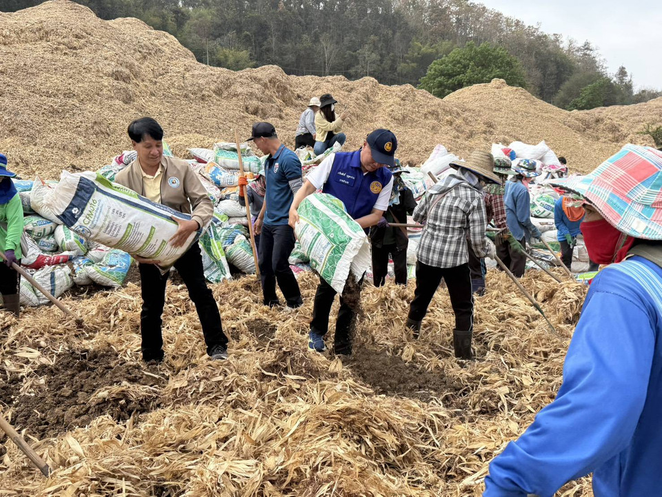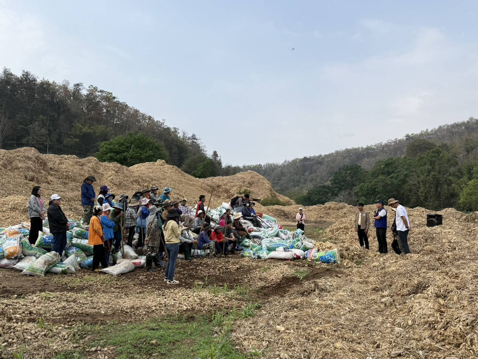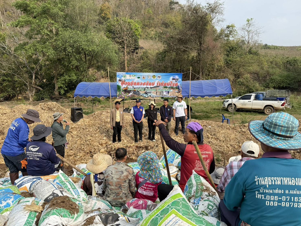 วันที่13 มี.ค.69 เวลา 09.30 น. ที่ลานโม่ข้าวโพดห้วยเผิ้ง ตำบลแม่นาจร อำเภอแม่แจ่ม จังหวัดเชียงใหม่ นายเกรียงศักดิ์ บุญตาปวน นายอำเภอแม่แจ่ม ร่วมกับนายสมบูรณ์ พะเยาว์ นายกองค์การบริหารส่วนตำบลแม่นาจร ผู้แทนสถานีพัฒนาที่ดินเชียงใหม่ หัวหน้าศูนย์พัฒนาพื้นที่สูงแบบโครงการหลวงแม่มะลอ ผู้แทนมูลนิธิเครือเจริญโภคภัณฑ์ และเกษตรกรในพื้นที่ รวมกว่า 70 คน ร่วมกิจกรรมทำ “ปุ๋ยหมักกองยักษ์” จากเปลือกและตอซังข้าวโพด เพื่อส่งเสริมการใช้ประโยชน์จากวัสดุเหลือใช้ทางการเกษตรและลดการเผาในพื้นที่