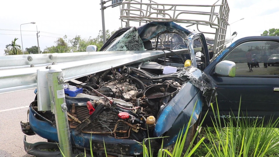 เมื่อเวลา 14.00 น.วันที่ 13 มีนาคม 2569 ร.ต.ต.บุญฉลอง หอมลาภ หัวหน้ารถสายตรวจ(ร้อยเวร 20)สภ.บ้านวิสัยเหนือ จ.ชุมพร ได้รับแจ้งว่าเกิดอุบัติเหตุรถกระบะเสียหลักพุ่งชนการร์ดเรล หรือราวกั้นไหล่ทาง บริเวณหลักกม.ที่ 21 บนถนนสายเอเชีย 41 ฝั่งขาขึ้นกรุงเทพฯ หมู่ 8 ตำบลวิสัยเหนือ อ.เมืองชุมพร จ.ชุมพร จึงพร้อมด้วยหน่วยกู้ชีพกู้ภัยมูลนิธิชุมพรการกุศลสงเคราะห์เขตวิสัยและเขตสวีเร่งตรวจสอบที่เกิดเหตุ