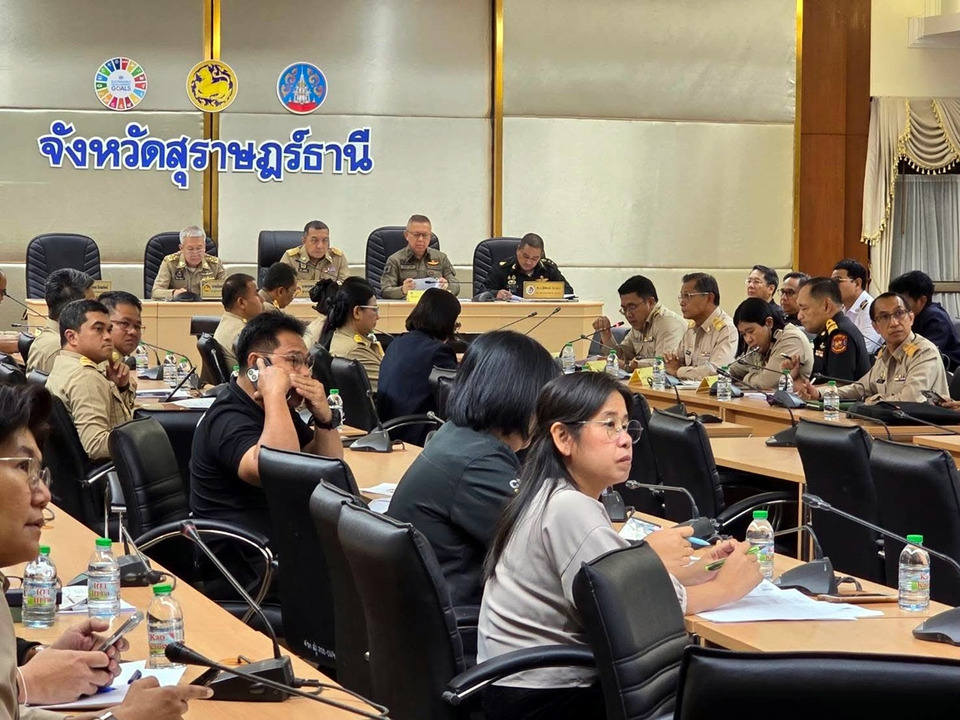 เมื่อเวลา 11.00 น. วันที่ 17 มี.ค.69 นายจุมพฏ วรรณฉัตรสิริ ผู้ว่าราชการจังหวัดสุราษฎร์ธานี เป็นประธานการประชุมเตรียมความพร้อมรองรับสถานการณ์ด้านพลังงาน ณ ห้องประชุมเมืองคนดี ชั้น 5 ศาลากลางจังหวัดสุราษฎร์ธานี โดยมี นายบันดาล สถิรชวาล รองผู้ว่าราชการจังหวัดสุราษฎร์ธานี พร้อมด้วย พล.ต.ต.สุวัฒน์ สุขศรี ผู้บังคับการตำรวจภูธรจังหวัดสุราษฎร์ธานี พ.อ.ฐิติพงษ์ อินวะษา รองผู้บัญชาการมณฑลทหารบกที่ 45 ปฏิบัติหน้าที่รองผู้อำนวยการรักษาความมั่นคงภายในจังหวัดสุราษฎร์ธานี (ฝ่ายทหาร) หัวหน้าส่วนราชการ หน่วยงานที่เกี่ยวข้อง และผู้ประกอบการธุรกิจขนส่งในพื้นที่เข้าร่วมประชุม