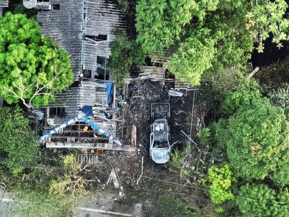 ขณะที่เจ้าหน้าที่เก็บกู้วัตถุระเบิดรและเจ้าหน้าที่พิสูจน์หลักฐานได้เข้าตรวจสอบที่เกิดเหตุ พบชิ้นส่วนรถ จยย.พ่วงข้างสภาพเป็นเศษเหล็กจากแรงระเบิดจึงเก็บรวบรวมพยานหลักฐานต่างๆ จากการตรวจสอบพบเป็นระเบิดแสวงเครื่อง น้ำหนักประมาน 15 กก. ซุกไว้ในรถจักรยานยนต์พ่วงข้าง
